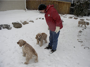 Well, Diego is a week old and he is certainly a true Minnesotan. He is getting a lot of experience on snow storms. Take a look at the pictures located on the link at the right side of the blog under Gus's pictures. We have had over a foot of snow since last night. Rudy, Peggy and I have cleaned the front sidewalk and driveway twice today. All the dogs with exception of Luke, the Tibetan Spaniel, want to be inside. You can see Luke in one of the pictures. Diego is settling in nicely. Both Rudy and Christine were able to get a little more sleep last night. We are fine given the weather conditions. We have plenty of food, wine and beer. As a matter of fact we had a terrific Sangiovesse, Rubizzo, from Tuscany accompanied with egg pasta and a pesto dressing. The wine was very smooth, a ruby color with lots of berries taste. Ok, enough of this.... I'll let you see the pictures.